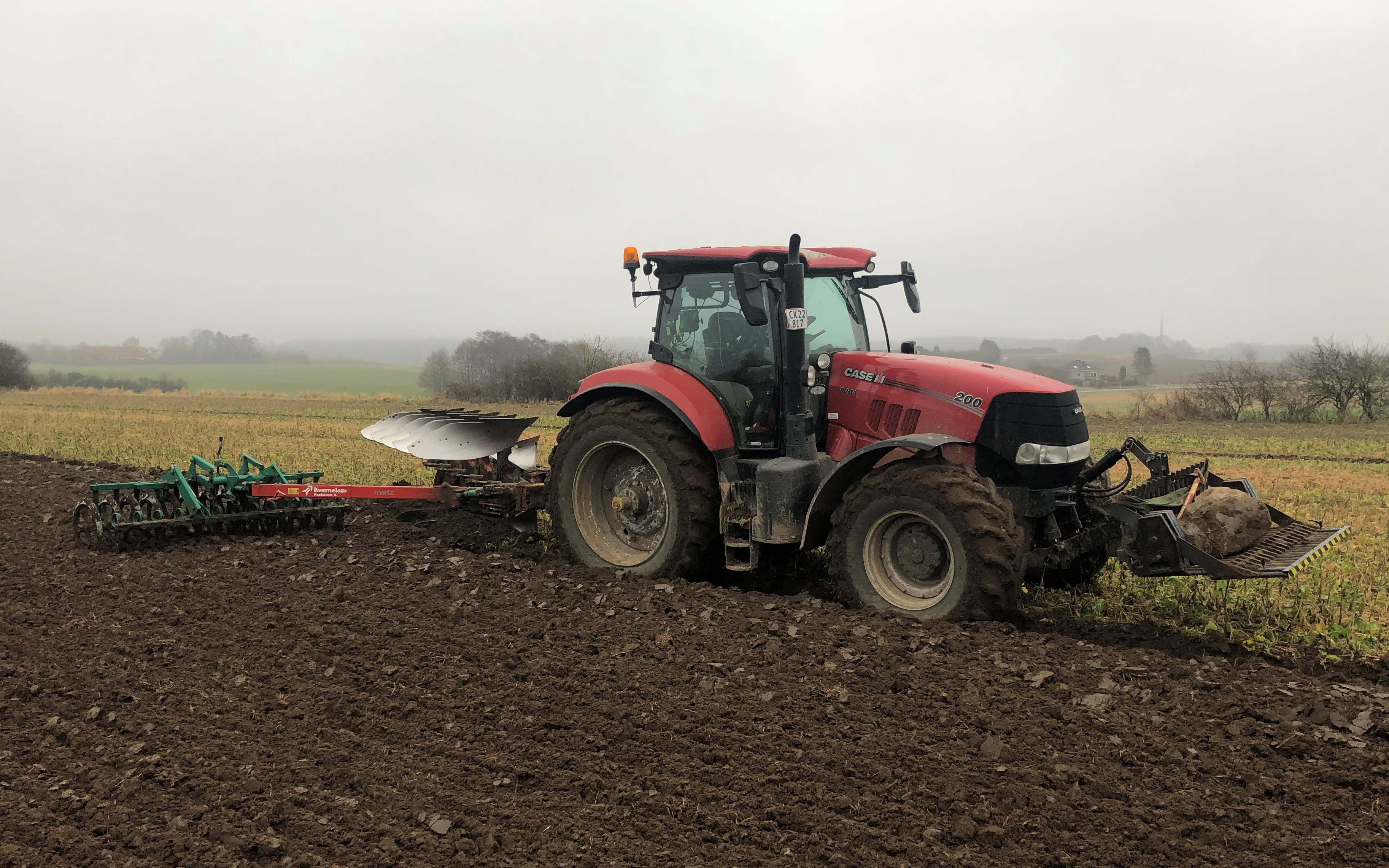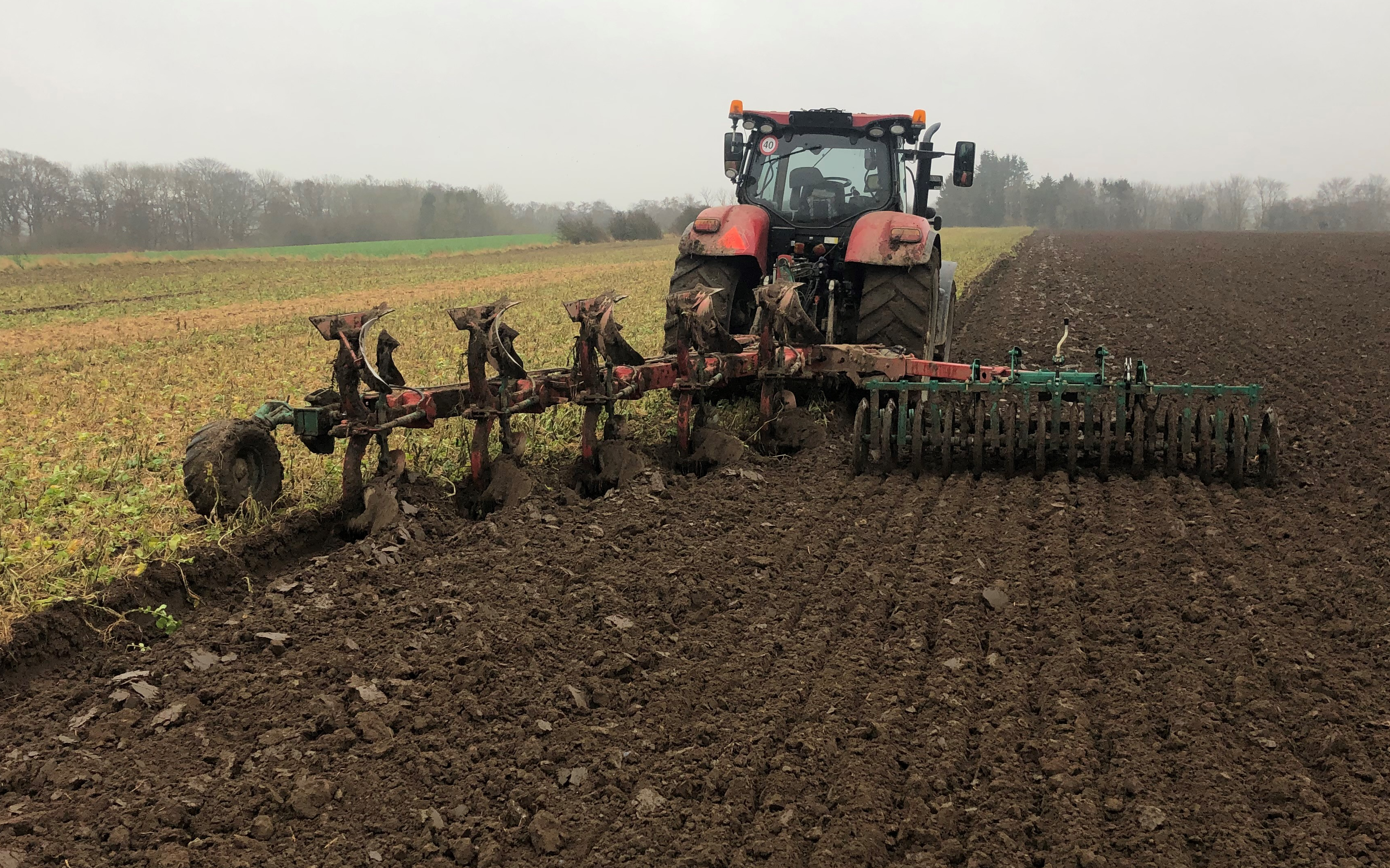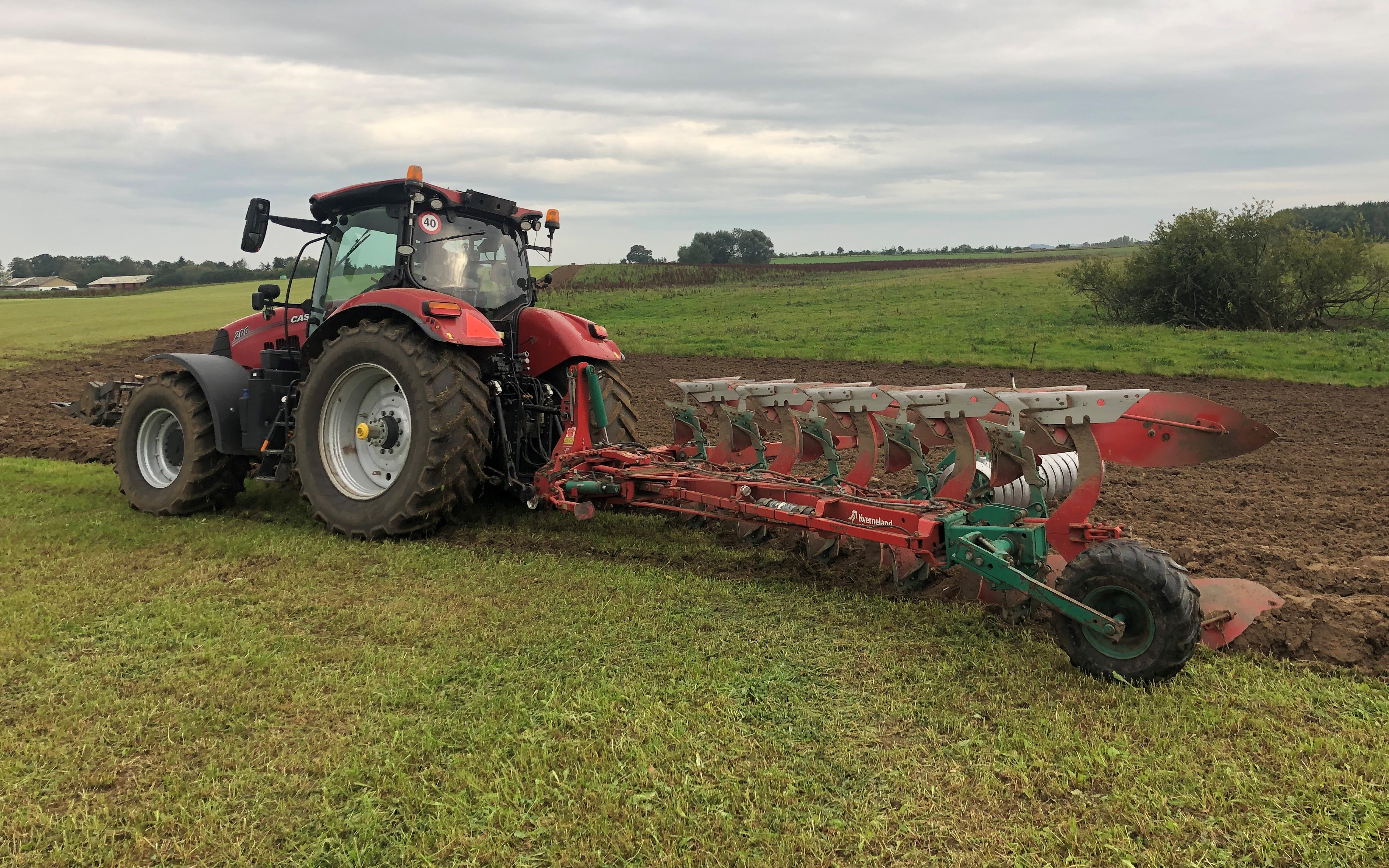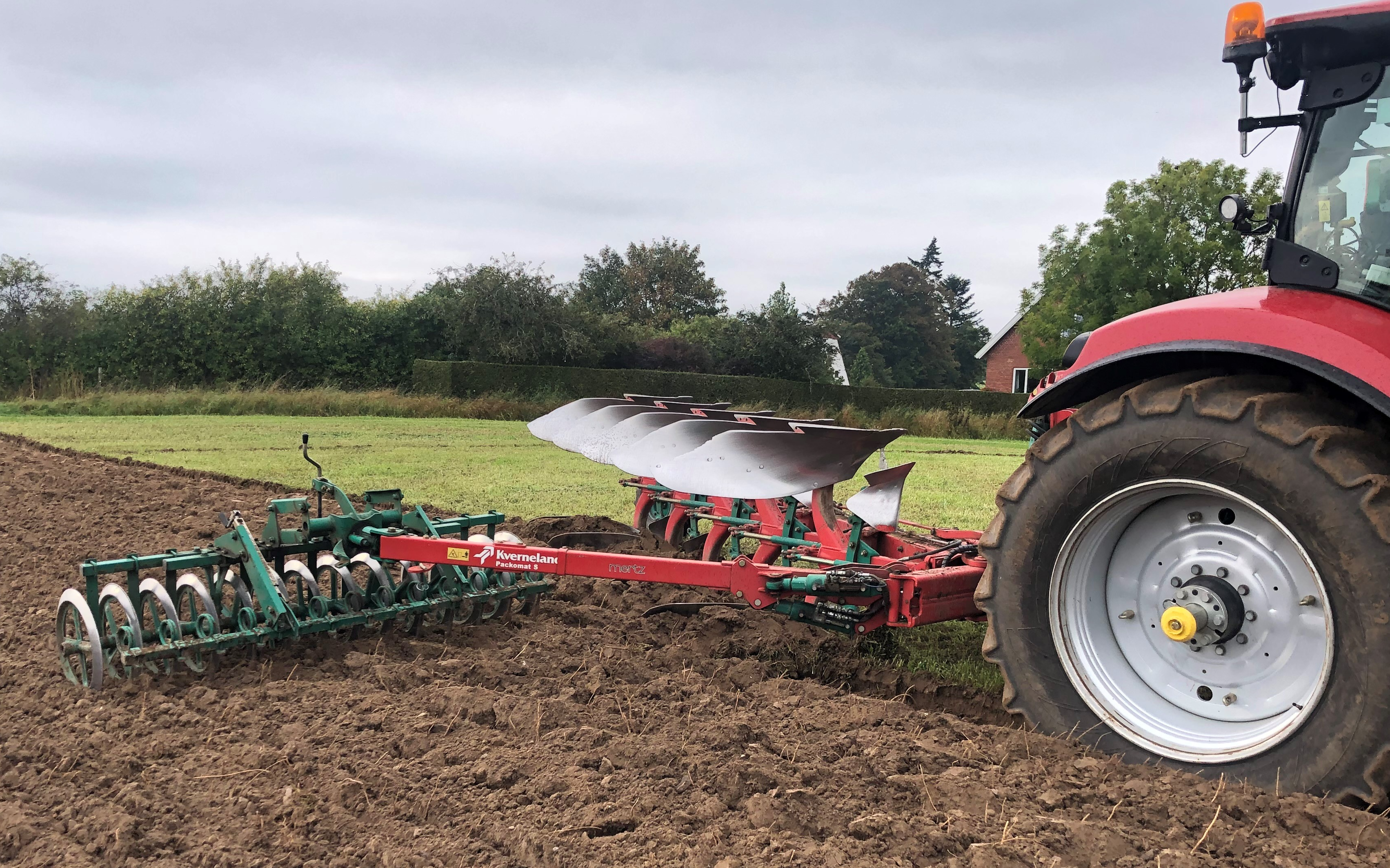 Pløjning udføres med integreret pakker som hjælper til med at holde på jodfugten. Samtidig undgår man også en stor del af de knolde som ellers kan ligge og tørre ud. Plover er monteret med store halmforplove som sikker god gennemgang af organisk martiale. Pakkeren løftes ind over ploven ved første træk sådan at der kan pløjes helt til skel.