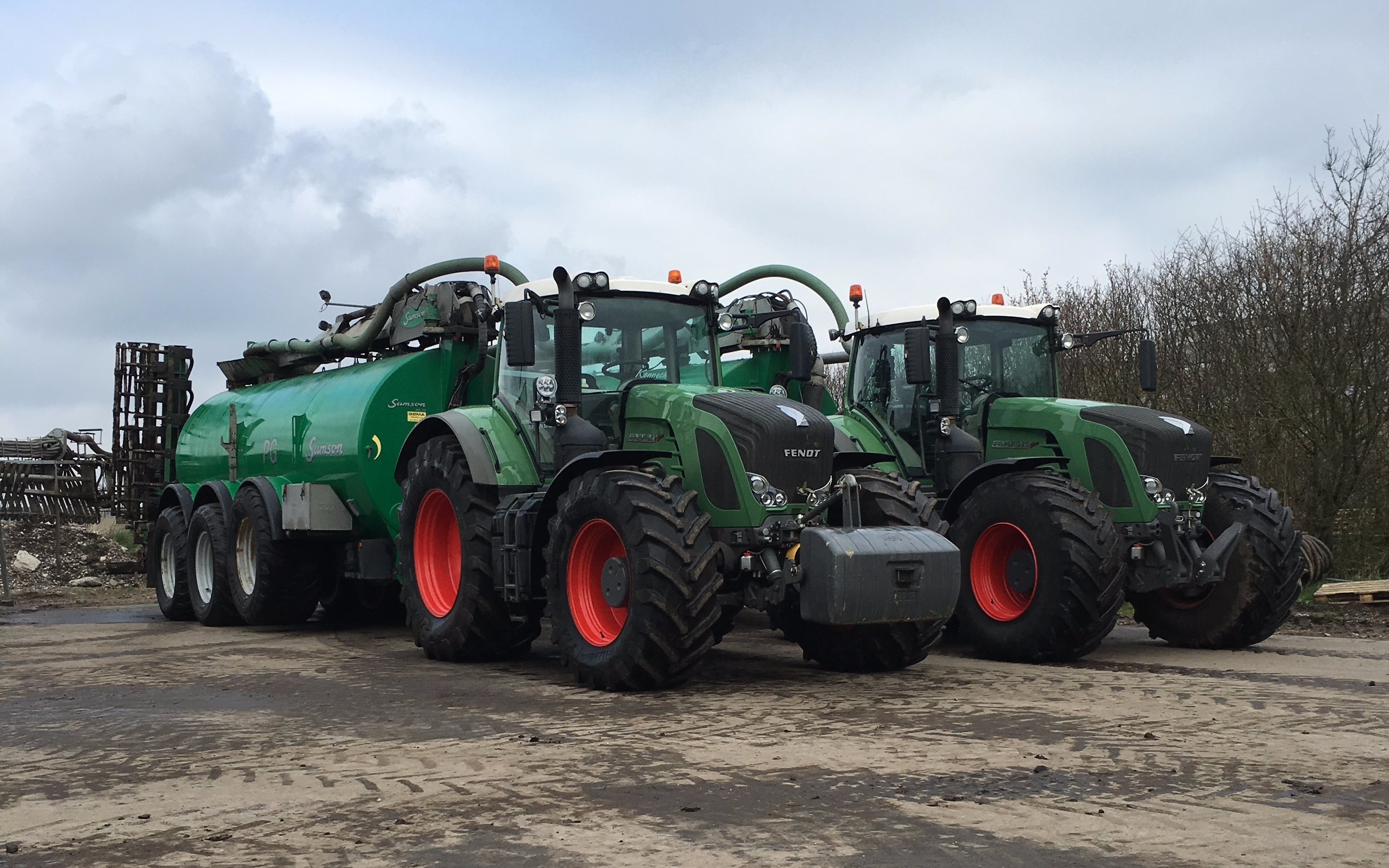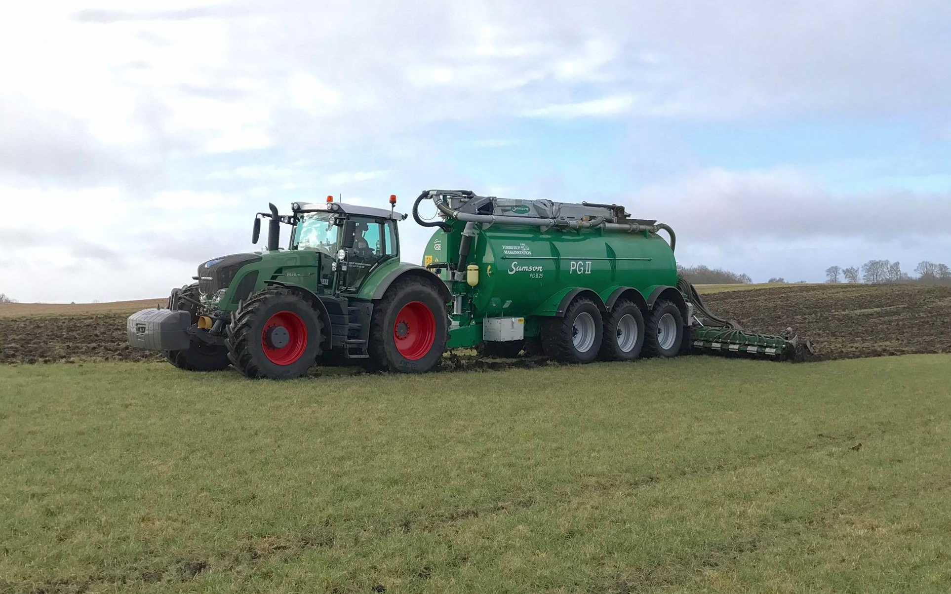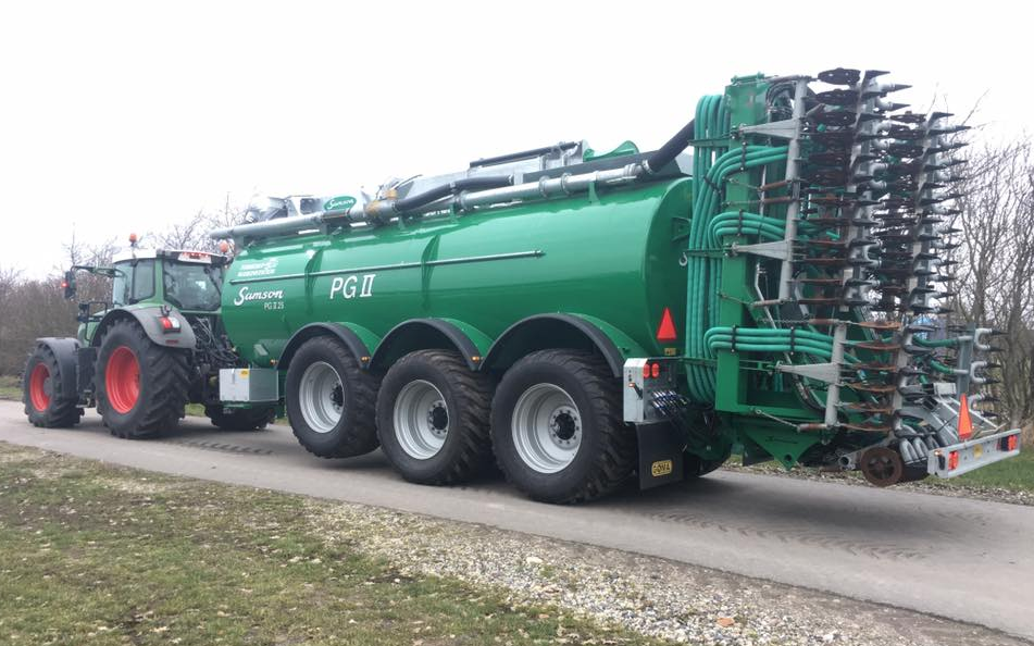 To stk. Samson PG 25. Den ene vogn kører med en 7,5 meter samson tandnedfælder. Den anden vogn har vi sæson 2017 købt en Gøma 7,5 Disc-nedfælder. De trækkes af to stk. FENDT 939 begge med fuld autostyring.