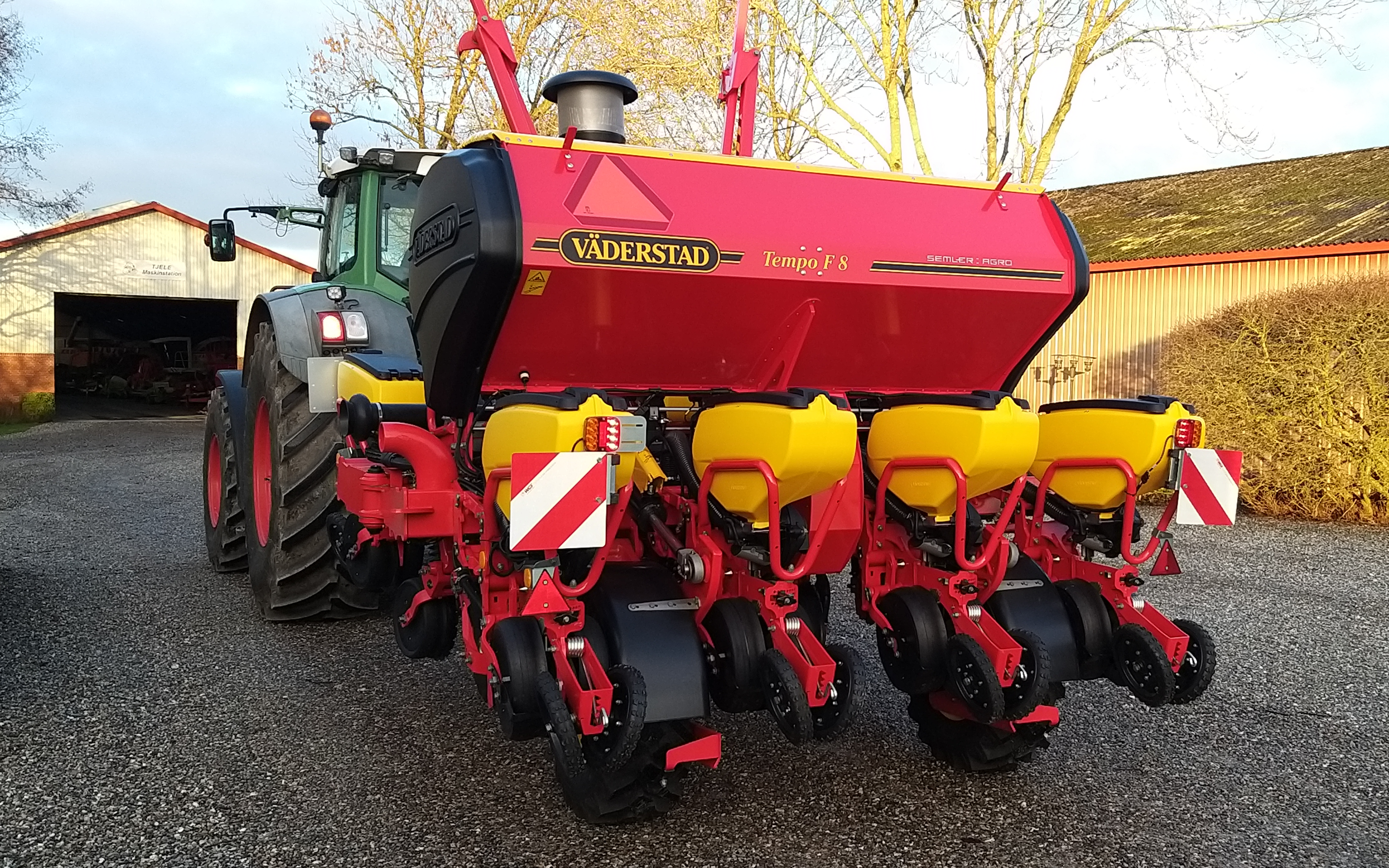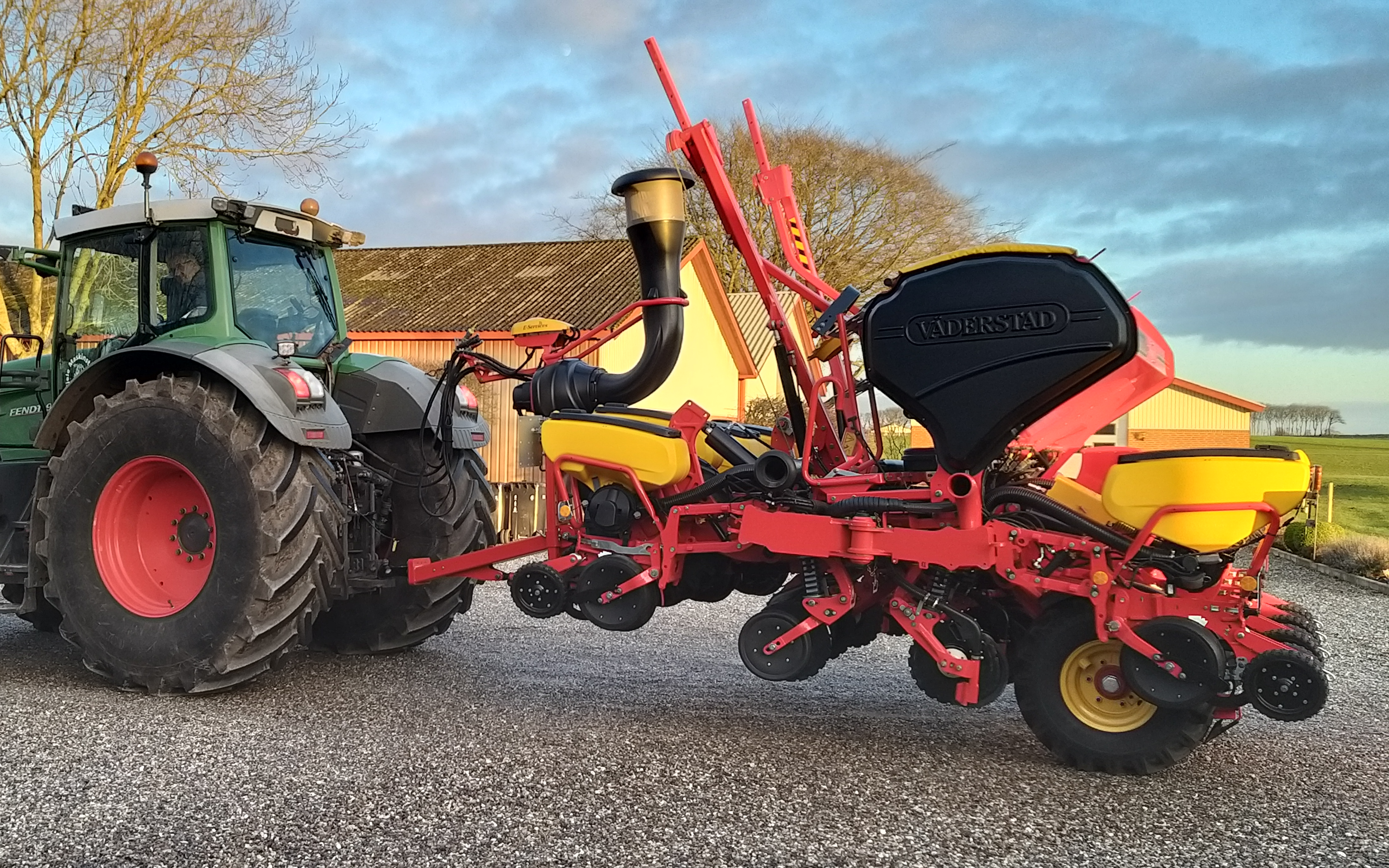 Enkornssåmaskine 8 rk., 6 meter udstyret med 1700L gødningstank og rækkelukning ved tilsåning af kiler. Såning udføres med GPS.