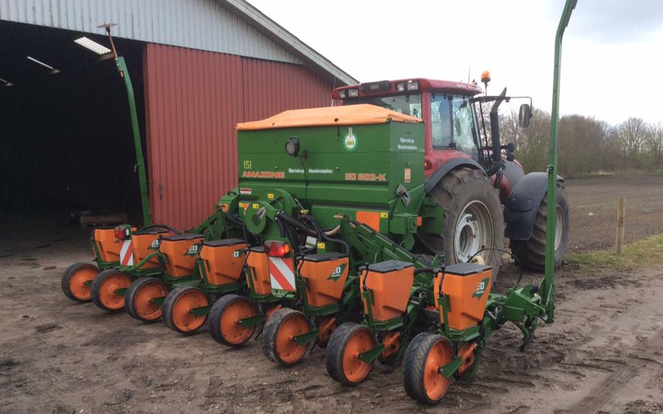 Vi tilbyder majssåning med 8 rækker med placering af gødning med vores Amazone såmaskine