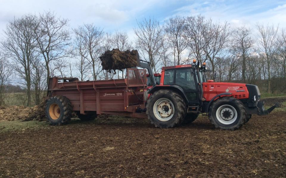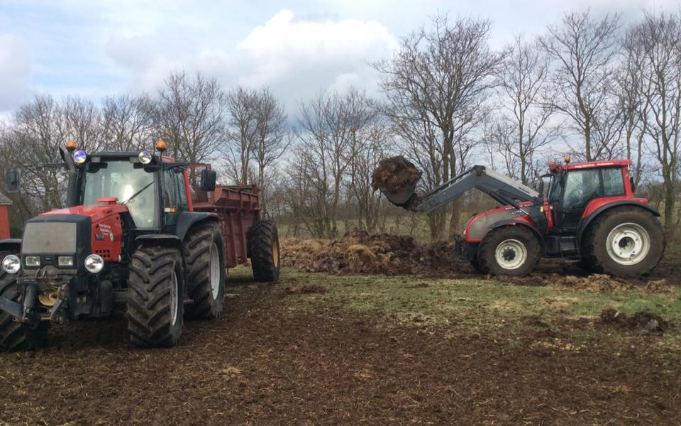 Vi tilbyder spredning af møg med 2 spredere og læsning med gummged.