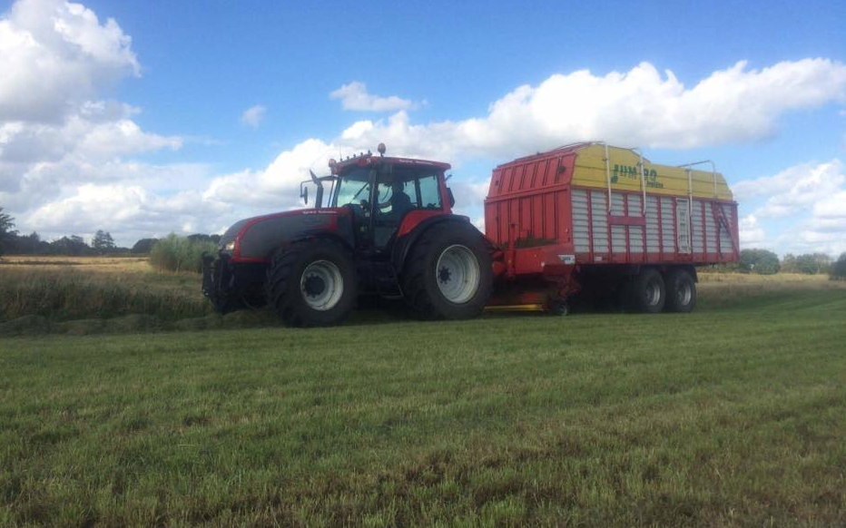 Vi tilbyder opsamling af græs med snittervogn. Vi kører altid med skarpe knive.