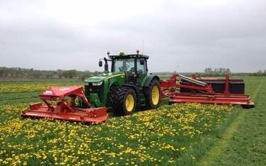 Vi skårlægger med bredspredning og båndudstyr. med en arbejdsbredde på 12,3meter. Der køres med GPS.