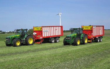Grovsnitning udføres med 2 stk. Pöttinger Jumbo 7210 Combiline. Vognene er på 72 kubikmeter og er udstyret med mulighed for tilsætning af mælkesyrebakterier. De kører begge med twindæk for at reducere trykskader i marken.
